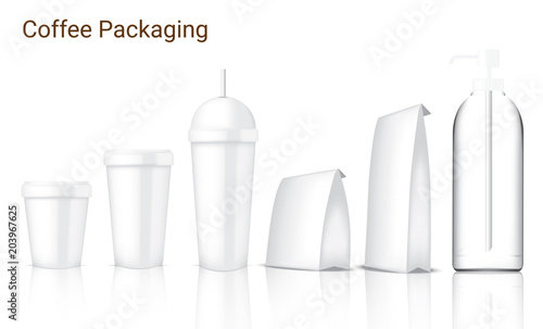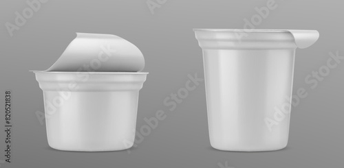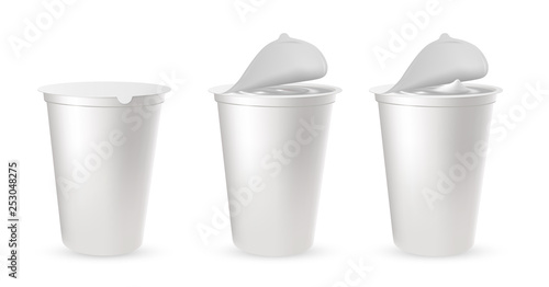 Векторная белая пустая упаковка для мороженого и набор контейнеров. Шаблоны пластиковых упаковок, выделенные на белом фоне.