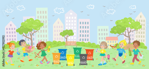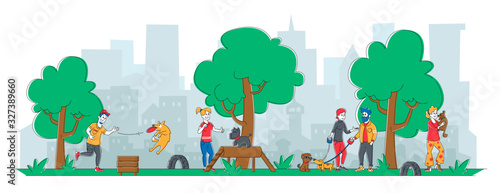 Векторная иллюстрация сезонной работы в городском парке. Персонаж-мужчина-работник, ухаживающий за травой и растениями, подстригающий, стрижка и озеленение мультяшного фона. Добровольческое сообщество по озеленению в городской местности