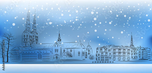 Векторная иллюстрация путешествия по Венеции. Знаменитая достопримечательность итальянского города, гондольная лодка, фон для осмотра достопримечательностей винтажной архитектуры в стиле вырезанного из бумаги искусства. Здание наследия оригами и самолет