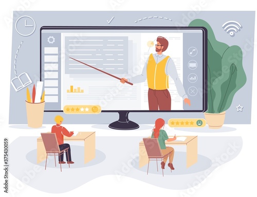 Ветеринарная клиника медицинские специалисты ветеринары осматривают домашнюю собаку, векторная плоская иллюстрация. Интерьер ветеринарного кабинета с врачами, лечащими кошек, собак, больных или травмированных животных. Услуги ветеринара.