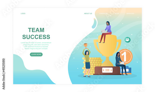 Векторный шаблон веб-сайта Victory, дизайн веб-страницы и целевой страницы для разработки веб-сайтов и мобильных сайтов. Награда победителю, успех бизнес-команды, концепция достижений.