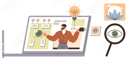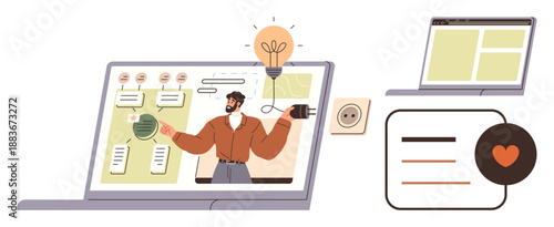 Набор концептуальных векторных плакатов для редактирования видео и прямой трансляции. Девушка записывает видео для своего блога в домашней студии. Человек, работающий в видеоредакторе. Оборудование для производства видеоблогов, прямая онлайн-трансляция.