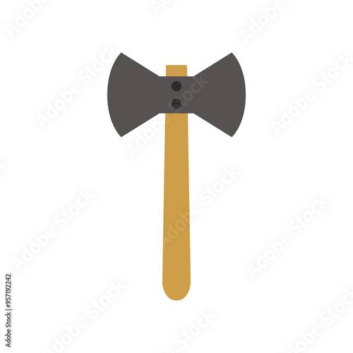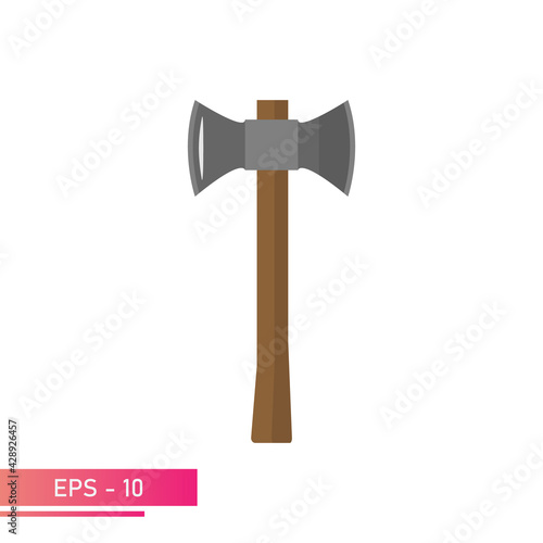 Вектор боевого двойного топора викингов. Средневековое оружие со стальным лезвием, значок старинного острого металлического боевого топора, выделенный на белом фоне