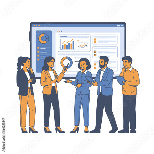 Вектор виртуальной художественной галереи. Концепция онлайн-экскурсии по музею. Люди просматривают цифровую выставку на экране компьютера. Знаменитый аукцион произведений искусства. Веб-туризм
