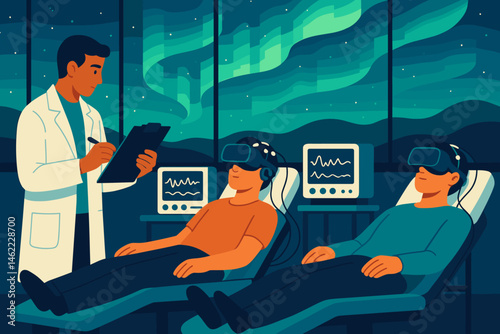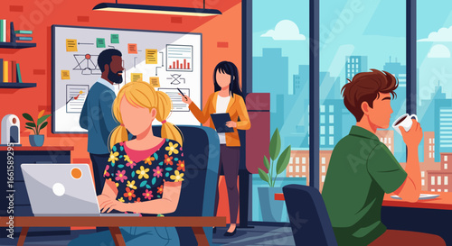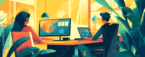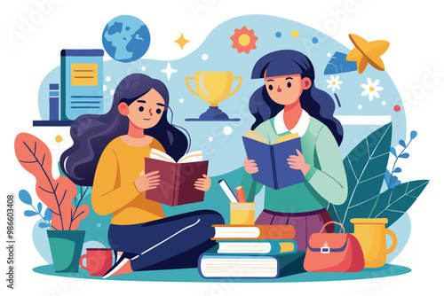 Векторная иллюстрация концепции виртуальной онлайн-церемонии вручения дипломов. Студенты заканчивают обучение по видеосвязи во время карантина по коронавирусу. Студентка приветствует своих коллег - выпускников в платьях и шляпах на экране.