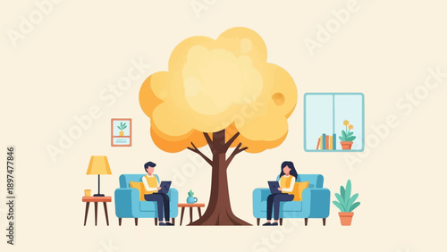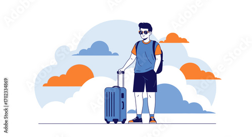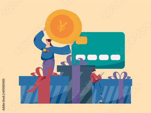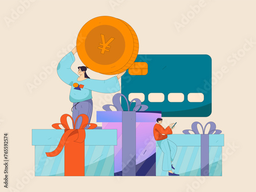 Векторная иллюстрация женщины в очках виртуальной реальности, поющей с микрофоном, как настоящая певица, выступающая на сцене. Дизайн в плоском стиле.