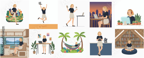 Векторная иллюстрация вирусной эпидемии. Профилактика респираторных заболеваний, вызванных коронавирусом, осведомленность. Группа людей в маске, ученые-микробиологи в лаборатории, пара на карантине дома. Пандемия коронавируса