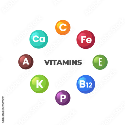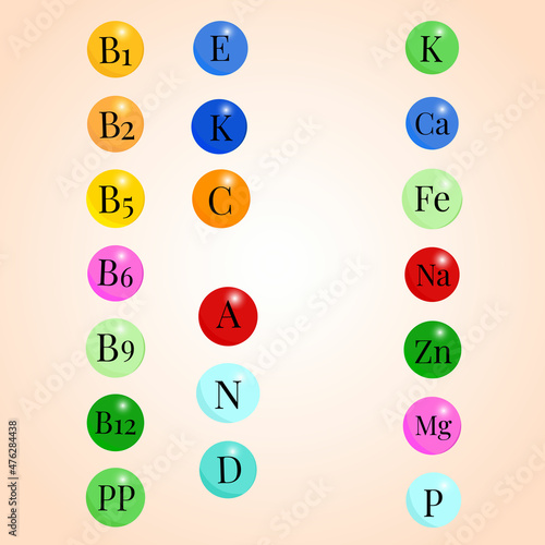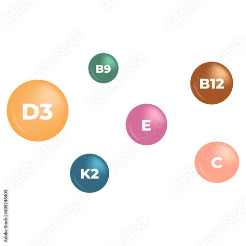 Фармацевтический бесшовный узор витаминного комплекса. Векторные реалистичные медицинские витамины и минералы цветные шарики в капсулах.