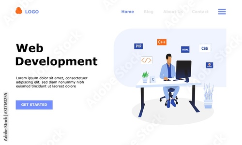Векторный шаблон веб-сайта с распознаванием голоса, дизайн веб-страницы и целевой страницы для разработки веб-сайтов и мобильных сайтов. Программное обеспечение для распознавания динамиков.