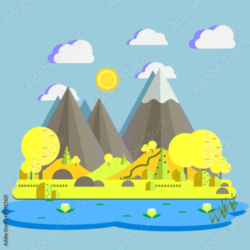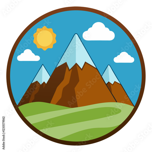 Векторная мультипликационная иллюстрация к извержению вулкана. Взрыв вулканической горы с изображением магмы, лавы, пепла и дыма на белом фоне.