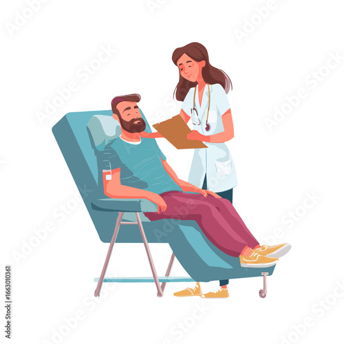 Команда волонтеров подстригает волосы бездомному векторная иконка, изолированная на белом фоне