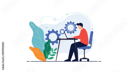Добровольцы, убирающие глобус планеты Земля, собирающие мусор, поливающие растения, плоская векторная иллюстрация. Спасите планету, окружающую среду, экологию, охрану природы.
