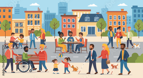 Волонтеры собирают одежду, предоставляют еду бездомным, старым, бедным, нуждающимся людям, векторная иллюстрация. Волонтерство, благотворительность, забота о бездомных и одиноких людях.