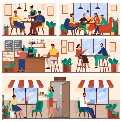 Добровольцы, заботящиеся о пожилых людях. Набор векторных иллюстраций концепции ухода за домом престарелых и поддержки пожилых людей. Помогать с едой, ходить пешком, приносить продукты