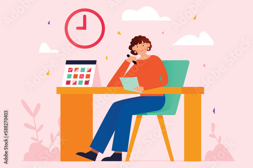Векторная плоская иллюстрация концепции голосования и выборов. День голосования. Избиратель мужского пола выбирает своего кандидата или местного представителя политической партии, например мэра и т.д., Отмечая избирательный бюллетень в кабине для голосования.