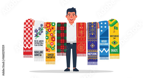 Векторная иллюстрация официанта, держащего бутылку вина. Дизайн в плоском стиле для персонала ресторана.