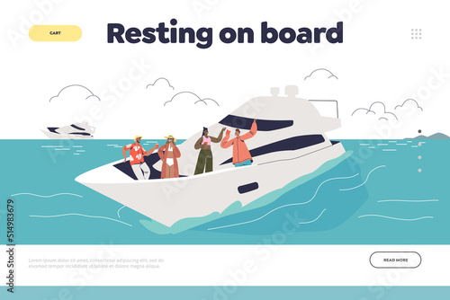 Векторный шаблон веб-сайта для вейкбординга, дизайн веб-страницы и целевой страницы для разработки веб-сайтов и мобильных сайтов. Человека буксируют на лодке во время катания на вейкборде. Экстремальные водные виды спорта, клуб вейкбординга.