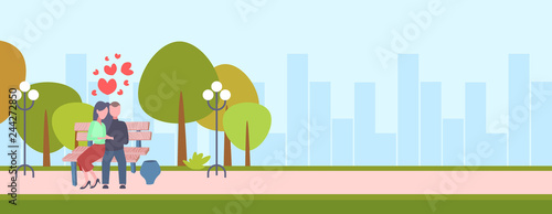 Прогулка в парке концептуальная векторная иллюстрация. Люди выгуливают собак, сидят на скамейке, гуляют с ребенком. Дизайн в плоском стиле.