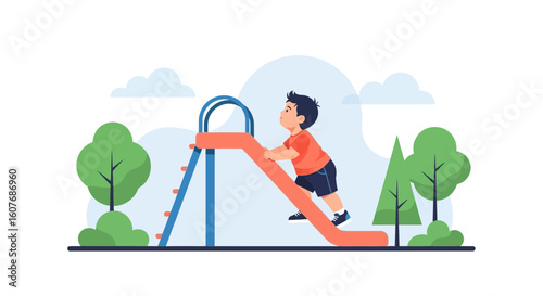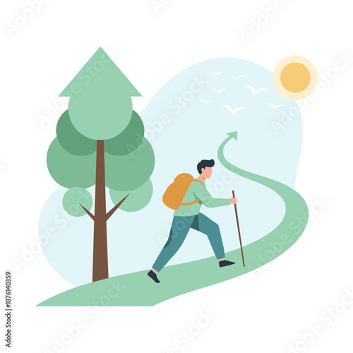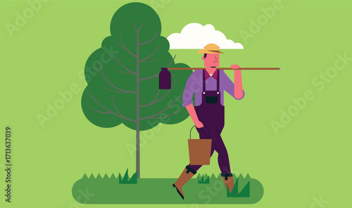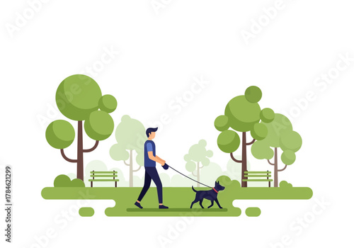 Векторная иллюстрация отца, гуляющего со своей дочерью в парке. Концепция ухода за детьми и воспитания детей элемент дизайна в плоском стиле.
