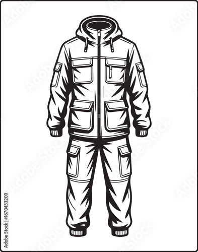 Теплый комбинезон для зимней рыбалки векторный значок, изолированный на белом фоне