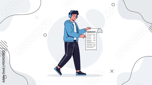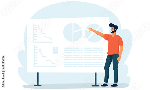 Мужчина-доброволец собирает мусор, кладет пустую коробку из-под пиццы в мешок для мусора, векторная плоская иллюстрация, изолированная на белом фоне. Сбор и сортировка бумажных отходов для вторичной переработки, уборка улиц.