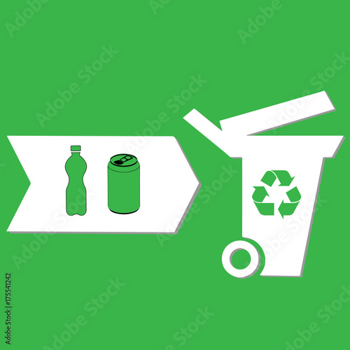 Векторная плоская иллюстрация сортировки отходов стекла. Зеленый мусорный контейнер с символом утилизации, пустые стеклянные бутылки, флакон духов, разбитая тарелка. Концепция экологии и переработки отходов для веб-баннера, страницы веб-сайта.