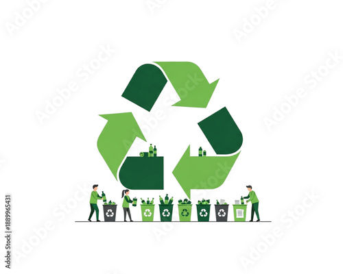 Векторный значок переработки отходов. Иллюстрация повторного использования мусора. Защита окружающей среды и экологический контроль, а также избавление от загрязнения органическим, пластиковым, стеклянным и электрическим мусором. Управление отходами
