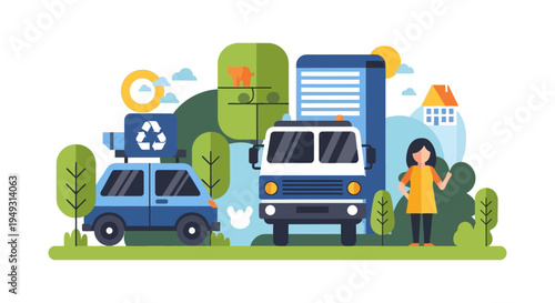 Векторная иллюстрация грузовика для доставки воды и курьера с двумя большими бутылками воды. Транспортировка питьевой воды элемент дизайна в плоском стиле.