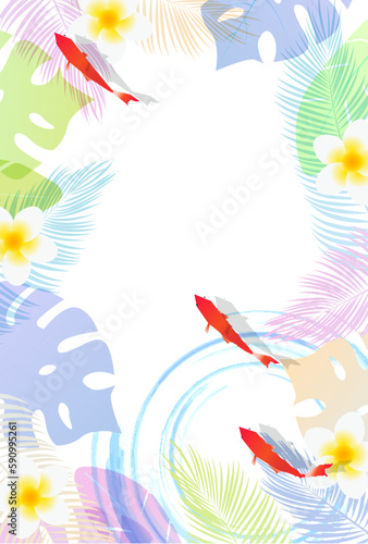 Водяная лилия, рыба карп кои, плавающая в воде. Векторная иллюстрация в стиле бумажного искусства. Современный элемент дизайна оригами.