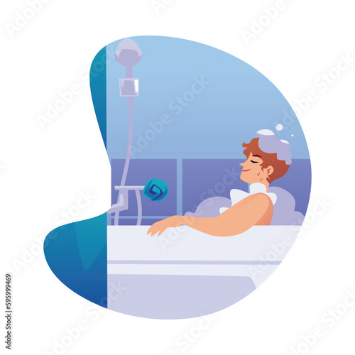 Векторная иллюстрация интерьера плавательного бассейна и молодых людей, играющих в водную игру. Элемент концептуального дизайна водного поло в плоском стиле.