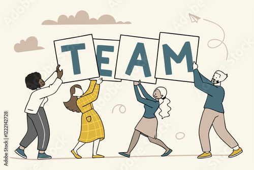 Мы нанимаем векторную иллюстрацию дизайна в плоском стиле. Подбор персонала для бизнеса, концепция управления человеческими ресурсами с символами для веб-баннера, страницы веб-сайта и т.д.