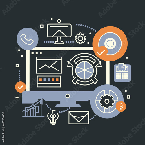 Веб-разработка, верстка и программирование векторного шаблона баннера. Сервис создания сайтов, студия веб-дизайна для создания цифрового программного обеспечения на мобильной, десктопной платформе