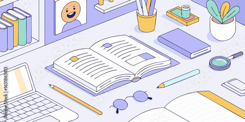 Иллюстрация векторной концепции веб-права. Юридические символы Книга законов с земным шаром, весами правосудия, судейским молотком, соглашением. Изометрическая композиция для веб-баннера, страницы веб-сайта и т.д.