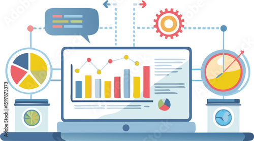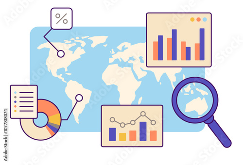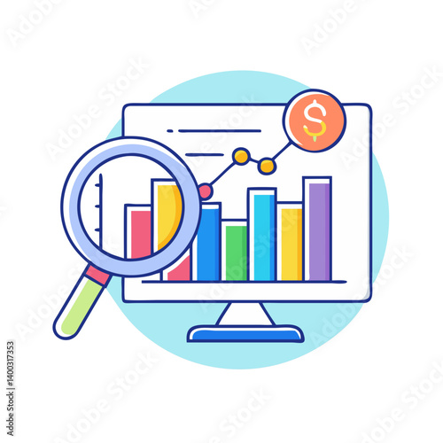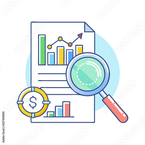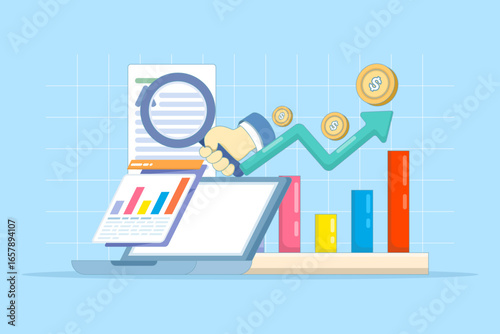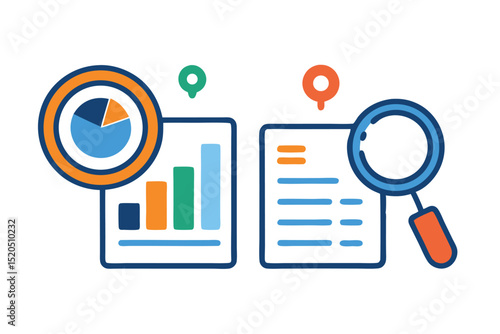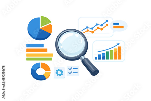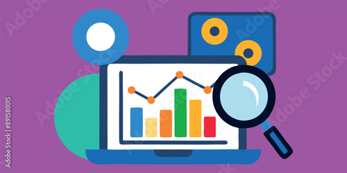 Веб-поиск и анализ данных 3d векторная иллюстрация. Окно браузера, лупа и графическая диаграмма изометрического дизайна. Исследование бизнес-информации, seo и маркетинговая концепция