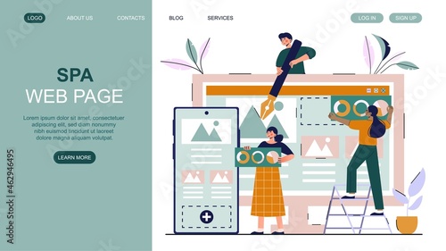 Услуги по созданию, обновлению и обслуживанию веб-сайта. Векторный шаблон веб-сайта, дизайн веб-страницы и целевой страницы для разработки веб-сайтов и мобильных сайтов.