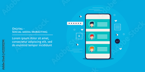 Экраны включения веб-сайта. Цифровой маркетинг, отзывы клиентов, обмен фотографиями. Шаблон векторного баннера меню для разработки веб-сайтов и мобильных приложений. Современный дизайн плоская иллюстрация
