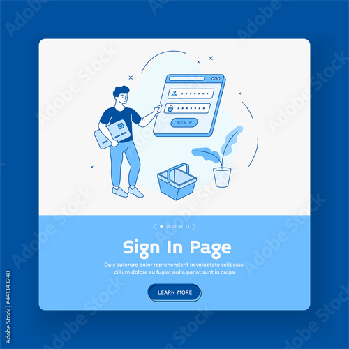 Экраны ввода веб-сайта. Онлайн-бизнес, налоги, контракты и лента новостей. Шаблон векторного баннера меню для разработки веб-сайтов и мобильных приложений. Современный дизайн линейное искусство плоская иллюстрация