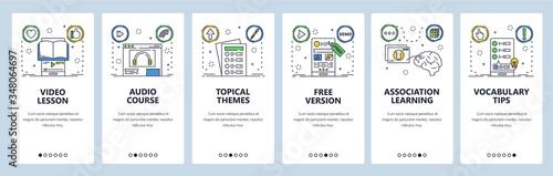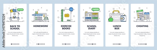 Экраны ввода веб-сайта. Система школьного образования, начальная школа и детский сад. Шаблон векторного баннера меню для разработки веб-сайтов и мобильных приложений. Плоская иллюстрация современного дизайна