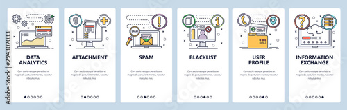 Экраны ввода веб-сайта. Спортивные значки. Езда на велосипеде, бокс, плавание, йога, гимнастика. Шаблон векторного баннера меню для разработки веб-сайтов и мобильных приложений. Современный дизайн линейное искусство плоская иллюстрация