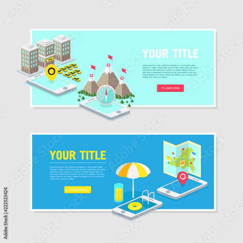 Экраны включения веб-сайта. Планирование поездок,. Шаблон векторного баннера меню для разработки веб-сайтов и мобильных приложений. Современный дизайн плоская иллюстрация.
