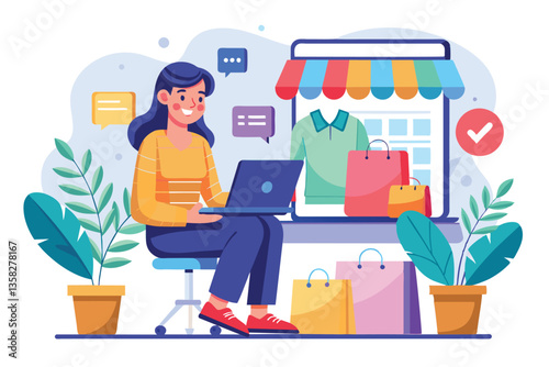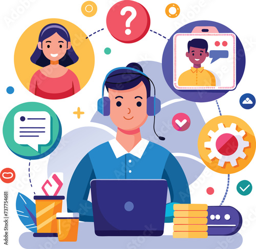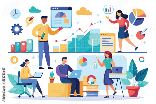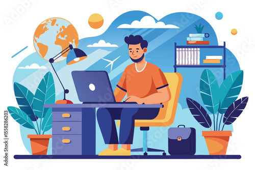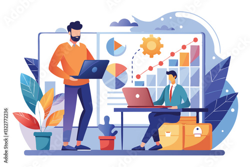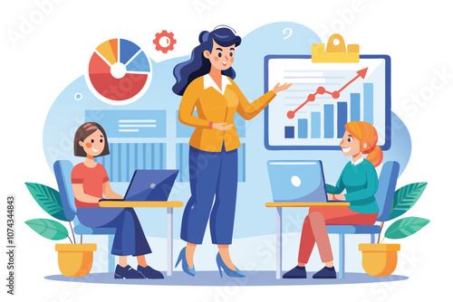 Студенты, обучающиеся онлайн с репетитором в цифровом классе, векторная плоская иллюстрация. Веб-семинар, бизнес-вебинар, онлайн-видеотренинг, виртуальный учебник, дистанционное обучение, технология видеоконференцсвязи