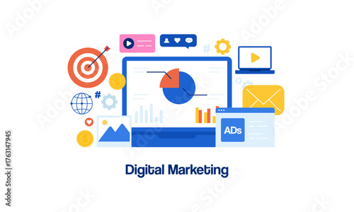 Адаптация для веб-сайта и мобильного приложения. Векторный шаблон баннера меню для разработки веб-сайтов и приложений. Мониторинг эффективности SEO-оптимизации, таргетинг, управление данными, экраны поиска по ключевым словам.