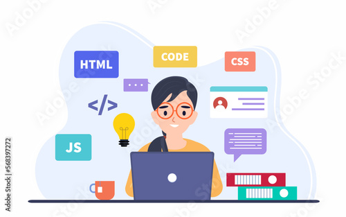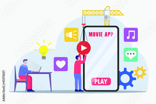 Композиция процесса создания веб-сайта с микросимволами и большим монитором компьютера, векторная иллюстрация. Концепция дизайна и разработки веб-страницы.
