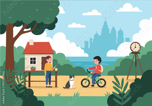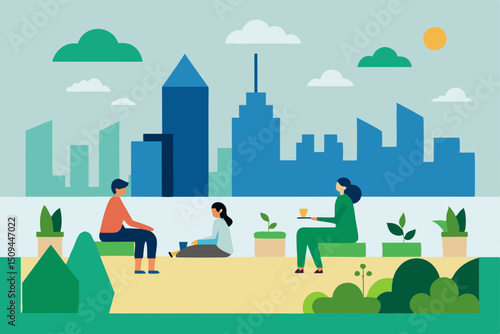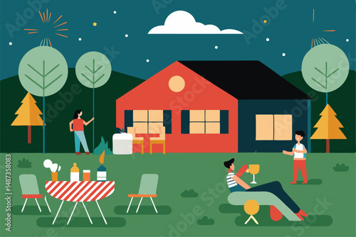Векторная иллюстрация свадебного торжества. Жених и невеста, гости, танцующие под музыку, музыкант и певица, элементы дизайна свадебного торта в плоском стиле.