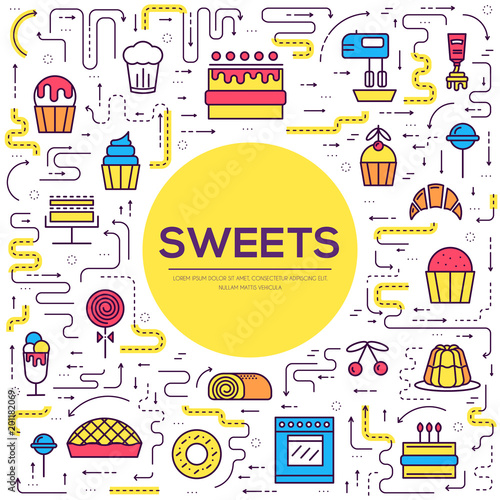 Векторная иллюстрация концепции свадьбы. Современный элемент дизайна в плоском стиле thin line art в форме свадебного торта со свадебной символикой, значками для баннеров веб-сайта и печатных материалов.
