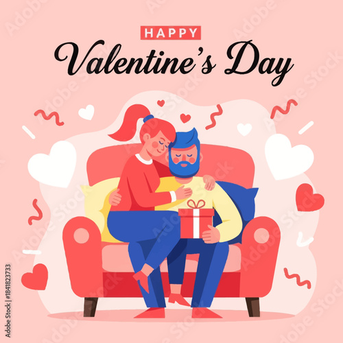 Векторная плоская иллюстрация кольца с бриллиантом, воздушные шары в форме сердца, подарочные коробки, букет цветов, шампанское, красный галстук-бабочка. Концепция услуг по организации свадеб для веб-баннера, страницы веб-сайта и т.д.