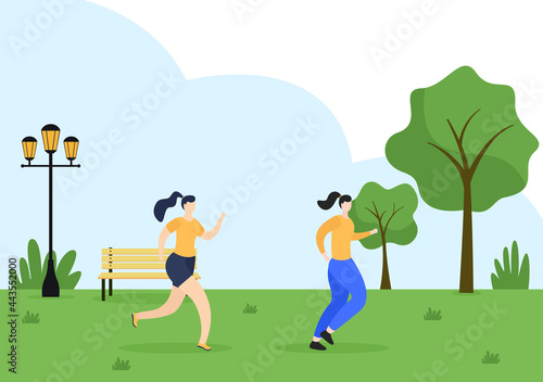 Свадебная фотосессия с концепцией умного современного технологического оборудования. Фотограф-мужчина фотографирует жениха и невесту в лесу, используя дистанционно управляемый беспилотник с векторной иллюстрацией камеры