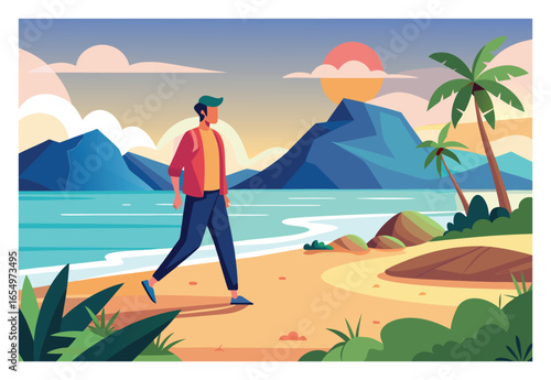 Профессиональная свадебная фотография, делающая снимок любящей молодоженской пары на береговой линии морского курорта векторная иллюстрация. Романтические флюиды, церемония бракосочетания на морском побережье