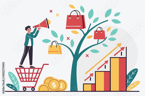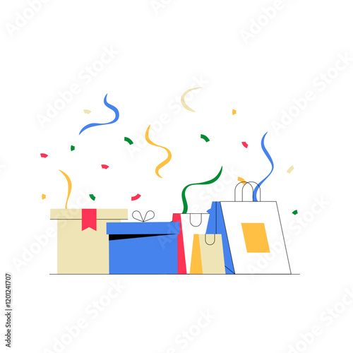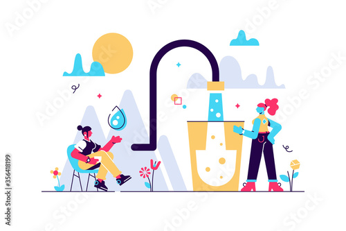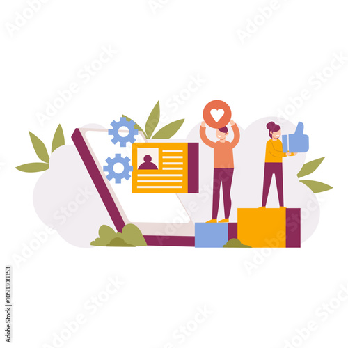 Концепция услуг свадебного планировщика плоская векторная иллюстрация. Гигантский торт, подарочные коробки, бокалы для вина и крошечные персонажи составляют контрольный список планирования свадьбы.