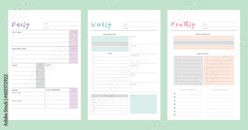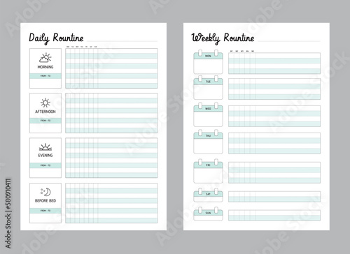 Векторный шаблон еженедельного планировщика с милыми кошками и аксессуарами для домашних животных. Органайзер и расписание с местом для заметок.